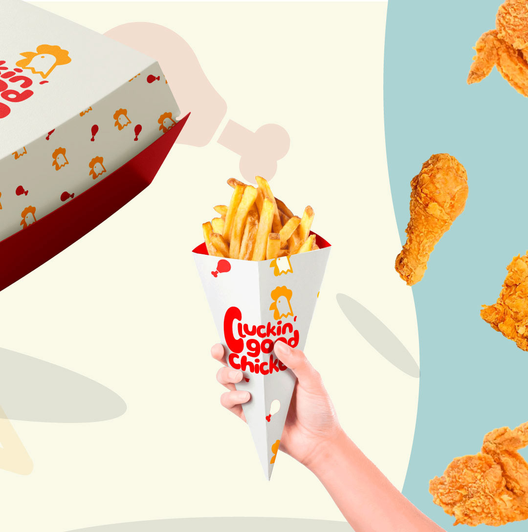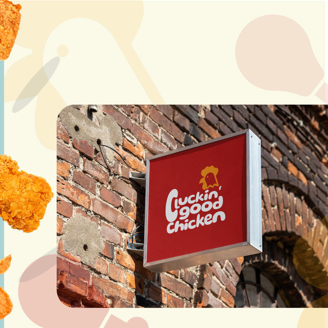 Branding for a mouth watering crispy chicken fast food chain. Branding included logo, color palette, patterns and mockups
